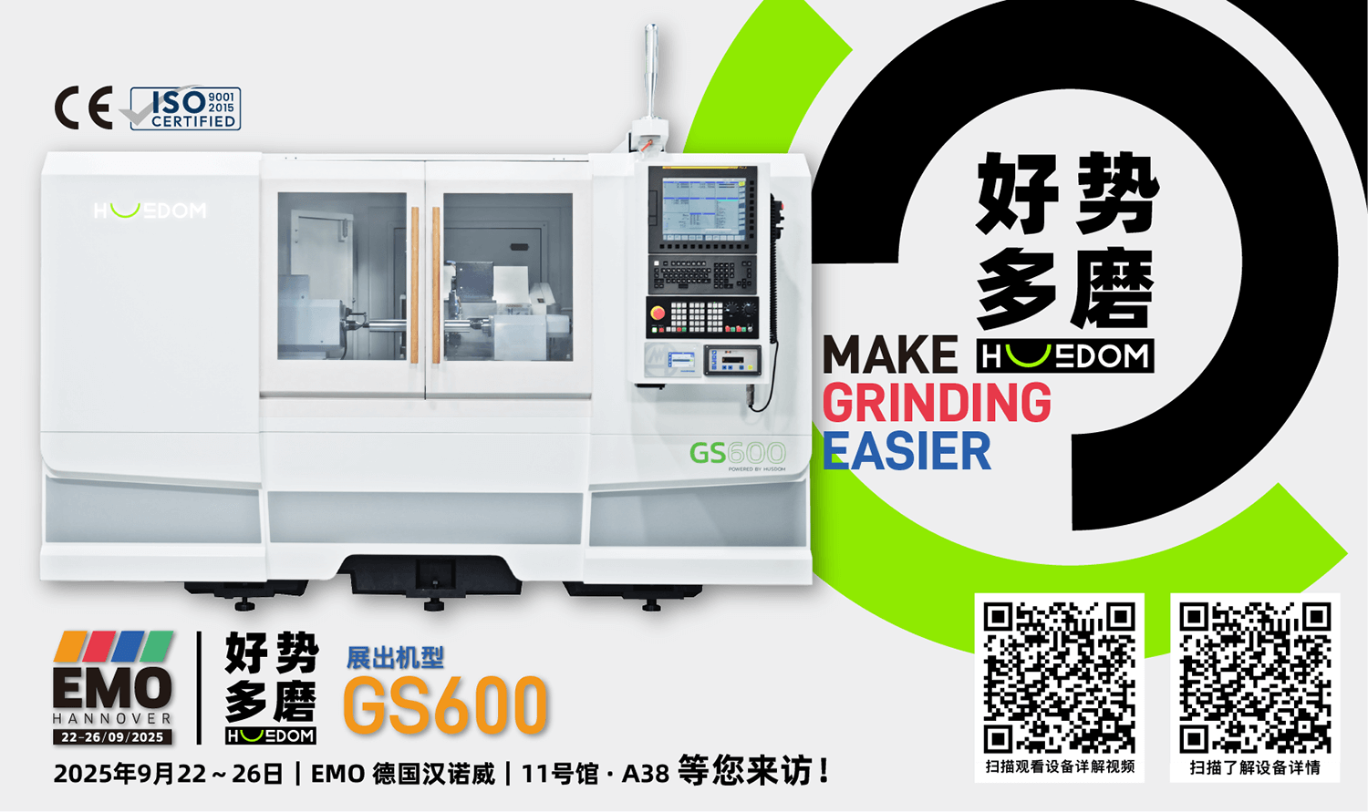 距离全球领先的制造业盛会EMO汉诺威2025还有不到一个月的时间,HUSDOM已经迫不及待与您相见!今年9月,我们将展示我们的GS600精密磨床,为您带来更轻松、更高效的磨削体验。